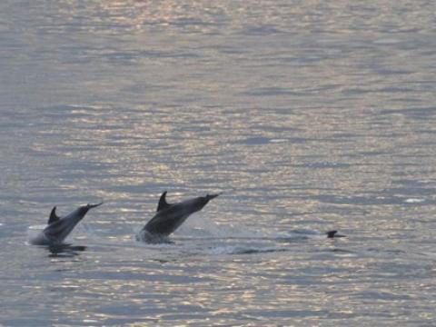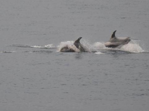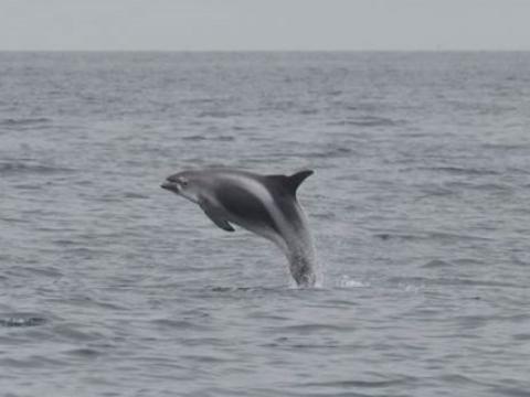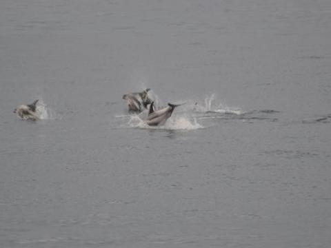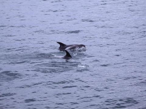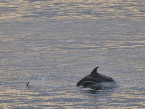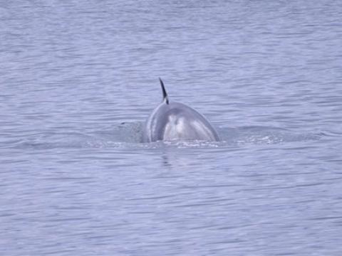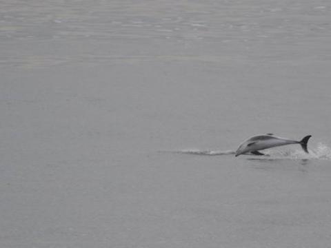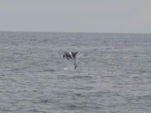 Report from Elding: The sea and weather conditions were picture perfect as we headed out into the bay: an almost mirror-like surface reflecting light grey clouds. Soon we found a pair of White-Beaked Dolphins, but we left them after a brief encounter and sailed towards a larger pod of dolphins. There were individuals breaching, leaping and porpoising through the water while others were traveling more casually. There must have been at least 15 individuals in this pod which later united with another one. Overall we must have seen no less than 30-40 dolphins on this tour. Whenever we left a pod of them in search of something else we were met by the next pod! And many of them had leaping or breaching individuals in the group... With the Minke Whales we were less lucky: we only found one individual and this one proved to be very elusive. But the dolphins more than made up for it and so did the amazing weather!