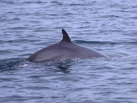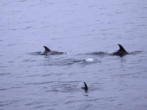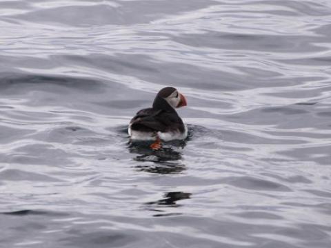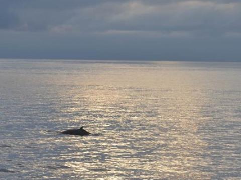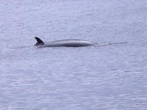 Report from Hafsúlan: With conditions much the same as they had been all day we headed out for the fifth time today hoping to spot some cetaceans. The tour followed the same recipe as the preceding ones at nine and one and we spotted some Harbour porpoises soon after leaving the harbour. These individuals were quite elusive however and we did not get a very good look at them. We then sailed further out until we found some White-beaked dolphins! These cetaceans are always fun and we had a good look at them as they were travelling, porpoising and leaping out of the water. After spending some time with the dolphins we headed further out hoping to spot some of their larger cousins. We were not dissapointed and we spotted a black back belonging to a Minke whale not long after leaving the dolphins. This was quite a social individual and surfaced around us frequently, giving us a good look at it. Then on our way back we spotted a very peculiar dorsal fin. We moved closer and found that it belonged to a Basking shark! These individuals are quite rare and we got an absolutely amazing look at the shark as it swam past us very slowly with its mouth wide open. A fantastic end to a good tour!