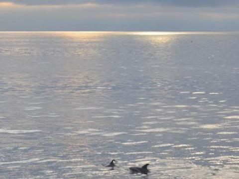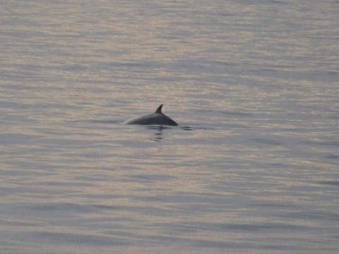 Report from Elding: The weather was excellent as we headed out this evening. The seas were calm and the visibility stunning. After about an hour, we spotted some splashes in the distance which turned out to be produced by leaping white-beaked dolphins. We spent a good amount of time with them as they interacted with our boat, diving under it and showing off their whole bodies before leaving them for some minke whales that we had spotted in the distance. The minkes were resting and we did not manage to get very close to them but had some nice sightings nevertheless. On the way back, we saw two more pods of dolphins which again were leaping and approached the boat. All in all, around 4 minkes and 10 dolphins were seen. On the way back, Bjarni played us some songs on his guitar.