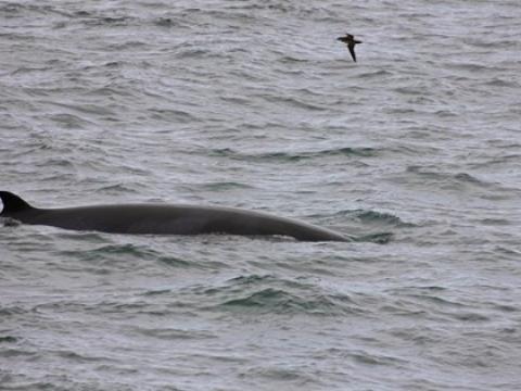 Tour at 14:00Report from Elding: The sea conditions had gotten better since the last tour and were actually very good although the sun wasn't shining. We were going to visit the Puffin island in the beginning but we got some great news from our other boat that the bay was crowded with life so we headed straight out. After around 40 minutes sail we weren't dissappointed as we found at least 15 Minke Whales that were feeding along with many different species of sea birds. The Minke's were surfacing all around us and some of them very close to the boat that we could hear the magnificent sound of the blow as they surfaced. For a while we just turned off the enginee and listened to the Minke's surfacing everywhere and the birds feeding around them. After we spent some time with them we headed to Lundey, one of the Puffin Islands to get a look at the home of the Atlantic Puffins.What an amazing tour with over 15 Minke Whales and the sea birds around them, it is amazing to watch how fast the wild life changes in Faxaflói bay. - Freydís Ósk HjörvarsdóttirTour at 13:00