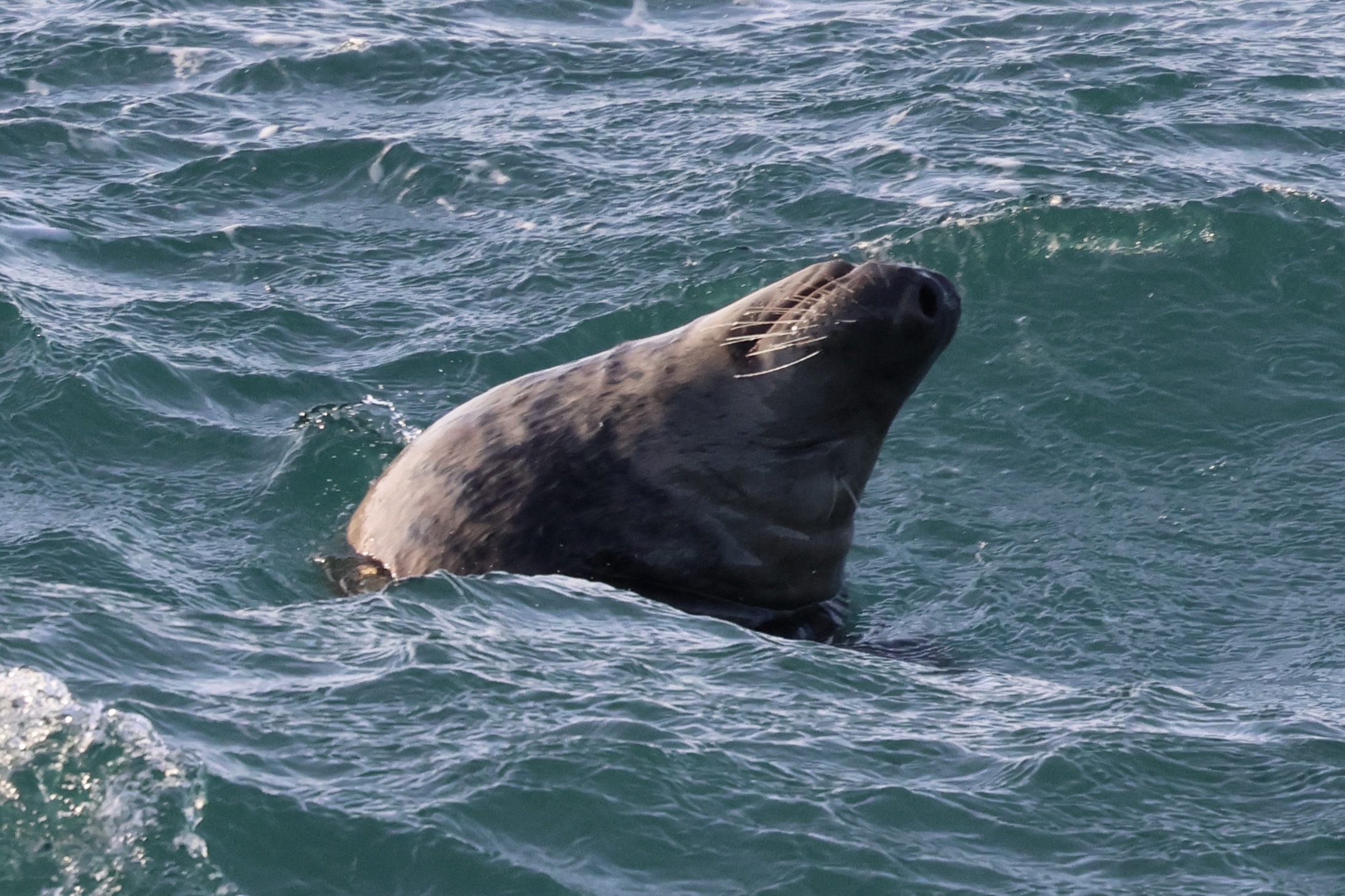 Report from Eldey: Pink and purple skies awaited our red boat! It was cold, like really cold, but no wind, so we had smooth seas, glassy at times. Perfect conditions to spot cetaceans! And so, after a mere 15 minutes of search, 2 humpback whales showed up on our eye radar. They were our beloved resident whales, Banana and Split! When we found them, they were sleepy, but they soon woke up because of a school of fish nearby. A few grey seals were signaling the presence of food in the area, and so the whales went hunting. After a few flukes and lunges, we went away to try to spot more stuff. Near the North buoy of Akurey, we found about 2 pods of 10 harbour porpoises feeding on some fish together with a few Northern gannets plunging into the cold waters. After a bit, they swam away and we went on to find the humpbacks again and after that we went back to the harbour.