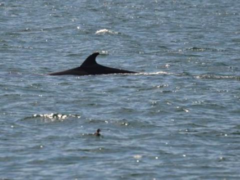 Report from Hafsúlan: This morning we sailed out onto Faxa bay and were greeted by amazing conditions. The seas were calm and the sky was overcast, creating perfect conditions for whale watching. At first there was a bit rain but it soon cleared up and it stayed dry. Soon after we had sailed past the Grótta Lighthouse we thought we saw something surface but it didn't surface again, so we couldn't confirm our suspicions. We sailed onward very confident because of the excellent conditions and we soon found our first cetacean of the day, a minke whale! This individual was quite elusive though and we only got a couple of good looks before it swam off. There was a lot of food in the area however and we found a few more individuals quite quickly. These were quite social and surfaced all around us, both up close and in the distance. We got a very good look at these individuals from most sides of the boat and could see their head and back very clearly. Topping it all of were some Harbour porpoises who surface right next to the minkes and proved very fun to look at in between the surfacing of the minkes. All in all a good tour and we headed back to Reykjavik in good spirits.