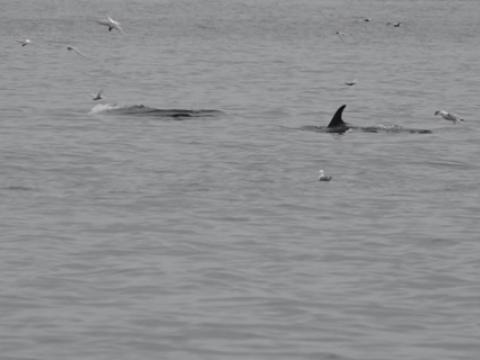 Report from Elding: We left Reykjavík under an overcast rainy sky but as we headed out on the bay, it stopped raining and the clouds started to clear up. As we sailed out of the harbour, we were greeted by a school of mackerel! After about half an hour, we spotted the first minke whales and from then on, they were all over the place, surrounding us. Some came quite close, others kept a distance, some we could hear, others we could smell and they were feeding in the surface, most of them surfacing frequently, showing of their head as they lunged out of the water. On the way back, a large pod of leaping white-beaked dolphins was seen and we spent about 20 minutes with them before heading back. All in all there were about 8 minkes and 18 dolphins. We even got some sun towards the end of the tour!