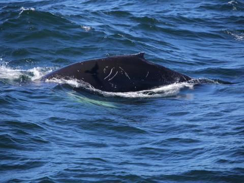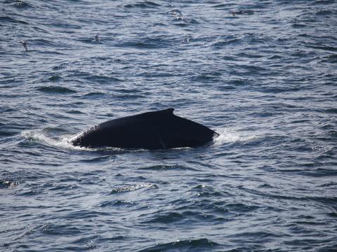 Report from Eldey: We started sailing with relatively calm weather, though there were some little whitecaps which made the spotting a little hard. We spend approximately an hour searching for cetaceans, when suddenly we saw in the horizon a couple of big flocks of birds. We travelled towards that direction till we saw in the horizon a big clean blow. When we approached to it, we could see a humpback whale surfacing the area. He offered us the chance of see their flippers, and also it's fluke. We were looking for it on an on when, suddenly, a second blow appeared really close to us. We were, indeed, in a good feeding area for these animals. In a certain point we started to look around us, and we notice that, indeed, there were a lots of blows raising in the distance. We manage to count at least 7 of different individuals. In our way back to the harbour we saw a small pod of harbour porpoises traveling really close to us.