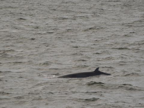Report from Hafsúlan: The sun was shining when we sailed out this afternoon but the wind was still blowing as strongly from north. The sea conations were slightly better than this morning but still rocky. We decided to sail to the area where we had seen the minke whale on the morning tour. We looked around without finding any signs of cetaceans. Then we went little further north where we saw big flocks of birds, mainly terns, diving town for fish. We found a minke whale that surfaced under the birds, it was really difficult to follow it because it kept changing directions. After we lost that minke whale we kept searching until a man that is training to become a captain spotted a blow in some distance, really well spotted on his first day at work. that minke whale was not as elusive and we were able to get a better look at it while it surfaced few times within 100 meters distance of our boat.