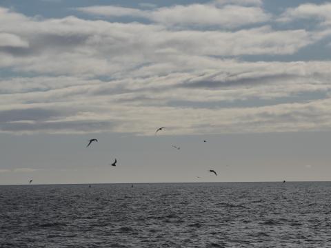 Report from Hafsúlan: the weather and sea conditions were much better than in the previous tours today. we went to the area where we had seen the minke whales earlier today. there were way more birds around this time and we saw two minke whales. one minke whale we were able to follow for at least 40 minutes, it seemed to be feeding as it kept changing directions and stayed in the same area for a long time. the other minke we only saw once in a longer distance. after a lovely time with this minke whale and the flocks of birds around us we had to finally get back to land.
