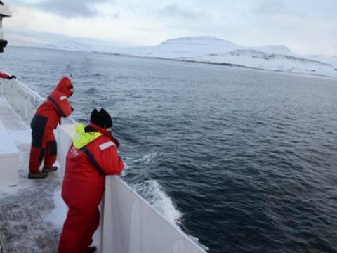 Report from Hafsúlan: Reykjavík had a very wintry feel to it this afternoon with a fresh layer of snow from the morning. We sailed out from the old harbour of Reykjavík and headed north towards Mt. Esja and Hvalfjourður (Whale Fjord), we saw two pods of Harbour Porpoises (2-3 individuals in each) but they didn´t stay with us long. We were mainly looking for a pod of killer whales that a fishing boat saw the day before, but alas they were gone. We even sailed up the fjord, as we´ve have done the past following them, it was really smooth sailing in the fjord and we got a beautiful view of the landscape. It was more of a swell offshore so we couldn´t go far. No other cetaceans were seen on this tour so we offered our passengers complimentary tickets for another free ride with us in the next two years.
