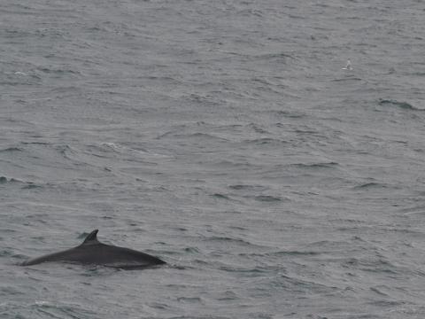 Report from Eldey: The strong winds continued on this afternoon tour. We headed out late because we'd arrived late into the harbour from our last tour. We'd gotten a bit to determined to spot friendly minkes and forgot the time. We headed out to where we saw big black spots of krill in the ocean and there we encountered a shy minke whale that came close to us once or twice and then headed off. Despite the rough seas Eldey was sailing smoothly and everyone enjoyed the ride in our new overalls.