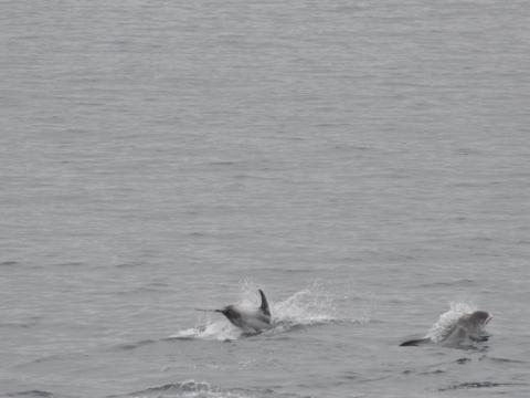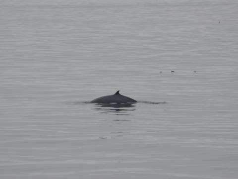 Report from Hafsúlan: This day started with a very great tour ! The sea could not possibly be smoother, and there was almost no wind. The fog hiding the landscape could not spoil these perfect conditions. Quickly we encountered 3 minke whales resting, traveling slowly and surfacing a lot. After taking a good look at them, we came across a group of 3 - 4 harbour porpoises, going up and down, probably sleeping. After a while, we found a pod of 6 white-beaked dolphins, displaying a lot of jump and leaps, passing under the boat, and surfacing very close to us. A minke whale even joined the party for a while ! We eventually ran out of time and had to head back to Reykjavik, with a lot of nice memories in mind.