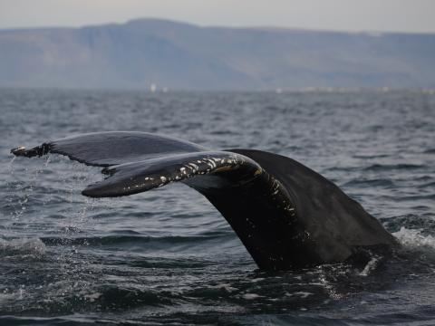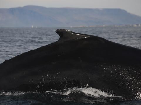 Report from Elding II: Yet again a sunny day might trick people who have been on the island for a week that Iceland is in fact a place with constant and perfect weather conditions. Due to the new covid19 restrictions and an unusually low number of passengers we sailed out today with our “small” 15 meter boat. The sea was calm and we had a great time standing (some of the passengers laying) in the sun and on the bow of the boat. It was a day filled with excitement as we witnessed some of the best marvels of nature the bay has to offer. The furthest we went from the harbor was 7 nautical miles and boy did we see a lot in that short distance from the starting point. There must have been 8 humpback whales in the broader area and we managed to see some of those up close and personal on both of the tours. We saw Tattoo the humpback whale, and we are always glad to recognize old friends.