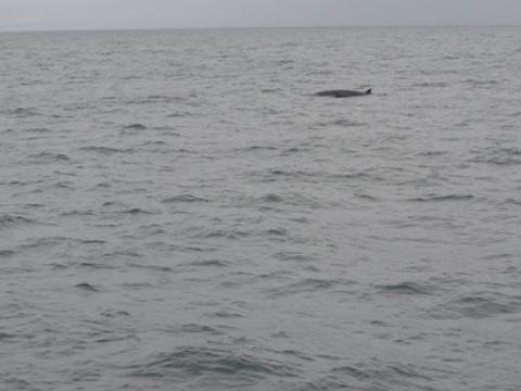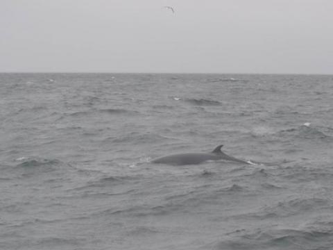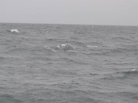 Report from Elding: The wind had picked up a little from the morning but we still had an overcast sky which means any large black things coming out of the water are much easier to see. The first thing we did was sail for the area where other boats had spotted some whales, when we got there we managed to get a few very short looks at a minke whale in the area but nothing very satisfying. Then after around 30 minutes more seaching we had earned something very good, this was a second minke whale that was feeding in the area. Normally we will manage to see a whale maybe once or twice close to the boat but this whale was constantly surfacing within just 30 metres of the boat! Good things clearly do come to those who wait as this was a great show from this whale, we could even see both blowholes very clearly on the top of the head of the whale. It had taken a while but it was definitely worth the wait.