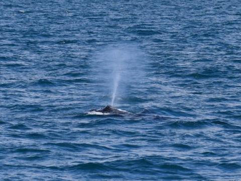 Report from Eldey: Although it was overcast, we still only had very weak wind, so spotting conditions were ideal. We headed in the direction of Kevlavik Airport as we were heading out. There were not many birds around, so we were just scanning the water surface for a dark dorsal fin or a blow to find the animals we look for. After about 50 minutes we saw our first blow of the tour! It took us roughly another 10 minutes to get to where we saw it and then we just slowed the engines and waited. A few minutes in, a humpback whale surfaced. It was most probably milling in the area, not really moving far but also without particular direction. Although it was always very slow, it was being difficult to predict as it always surfaced randomly and for only 1-2 breaths. We also saw a minke whale surface a few times, but it also wasn't to keen on coming closer to us. So we moved on to another humpback we again saw in the distance. This proved to be the best decision of the day. It was a younger individual, still nowhere near it's full size. But still full of curiosity! It came within 3 metres of our boat and just stayed there for over one minute, looking at all of us! It was an unforgettable moment in time.
