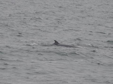 Report from Hafsúlan: The sky was completely covered but it was apart from occasionally light rain mostly dry. The sea conditions were much better than expected, not much swell and a bit of wind forming some white crests. Out in the grey Faxaflói we found 3 times white-beaked dolphins. The first encounter was very short of a grouping of 4-5 individuals travelling. The second sighting was a bit longer and as the 4-5 individuals were milling we saw the from different angles and once they even approached us so that we could see their white and black pattern very well, even for a moment under water. After they started travelling away from us we lost them out of sight but we found probably a third pod of again around 4-5 animals which we left after a short while in favour of a minke whale. At the beginning this minke was quite challenging to observe but the patience finally paid out when he came closer and everybody got the chance to have a proper look at this whale. So we managed to see two different species even we hoped to spend a bit more time watching them.