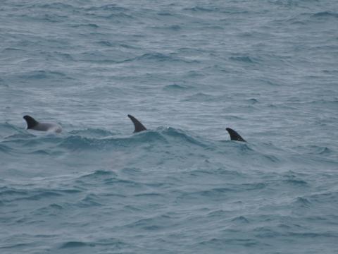 Report from Eldey and Hafsúlan: the overcast skies and clouds that threatened rain did not deter the many passengers that joined us this afternoon. Over 200 tourists joined us and for more comfort we seperated them all on to two boats for more room. There was very little wind from the south west but there were very high but long swell from yesterday's storm. Thankfully it didn't long until we got a call from another whale watching boat that encountered a pod of white-beaked dolphins. Turned out to be two pods close together, 10 individuals in one and 5 in the other, they were travelling very slowely, looked to be resting, milling and even showed signs that they were mating with each other. We were able to enjoy these dolphins for a long time and plenty of opportunities to get some nice pictures. We left them after a while to look for other species. Hafsúlan was lucky as it encountered two harbour seals and Eldey got a very quick glimpse of harbour porpoises but they were fast and most passengers didn't see them. There was also lots of birds out on the bay, gannets, gulls, razorbills, fulmars. It was nice to see more wildlife in the bay. Hopefully the whales will show themselves soon too. It was a nice day on the bay and even nicer that the rain stayed off us for all the tour.