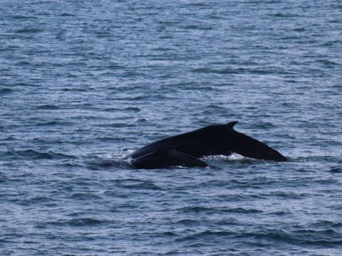 Report from Hafsúlan: We begun under the clouds and finished this tour under a blue sky. The wind was soft and the sea perfectly flat. We first crossed a pod of harbour porpoises but they desappeared really quickly. After 40 minutes at sea we saw spashes faraway. It was a pod of white-beaked dolphins. Unfortunately when we arrived they were gone. We continue our tour and we fastly found 3-4 minke whales feeding in an area with a lot of birds. It was probably a feast going on under the water. We stayed for a while with those minke whales surfacing sometimes very close of the boat, until we had to head back to Reykjavik. During the way back we were so happy to see 2 humpback whales, an adult and a calf. They seems to be calmly traveling to the north east. At the same moment we also so a big pod of 7-10 white-beaked dolphins traveling to the same direction. What an awesome tour!