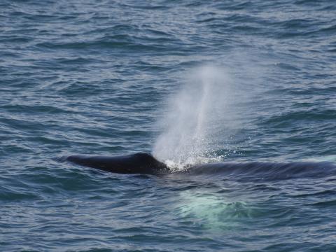 Report from Elding. The day just got even better. The wind had calmed down to almost nothing and the humpback whale (a different individual from the 10 o´clock tour) was also superb, surface feeding, showing his/her fluke many times and again came close to the boat. At one point it surfaced so close and so suddenly it scared us. I was guiding at the time and can´t remember what came out of my mouth during this time. Those sneaky whales!. The bird life, like this morning, was also incredible and the massive dark shadows of the shoals of fish below. One the way home we slowed down to see a minke whale but it was not in a whale watching mood and only the guide saw it once a few hundred meters away. Awesome day to be out at sea watching whales. Hope you all join us for the next adventure.