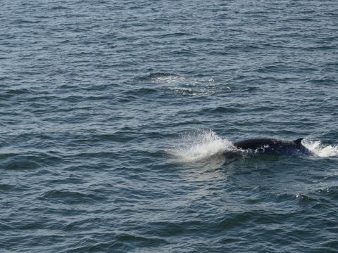 Report from Eldey: The day ended just as lovely as it began with the sun still high up in the sky. After about 50 min we caught a glimpse of a minke whale. We slowed down to get a better look at it, but unfortunately it only surfaced once more before it went for a dive and vanished. So we moved on and soon came across a pod of 8-10 white-beaked dolphins that another whale watching boat had spotted. They gave us some amazing picture opportunities as they were coming very close to us and stayed with us for a good amount of time surfacing all around us. While watching the dolphins, a humpback whale surfaced just about 50 m away from us as well! We got to see it very well for a few minutes, however it soon went for very long dives and required a lot of patience from our passengers. In the distance we could still see more dolphins speeding around and at some point left the humpback to enjoy some more white-beaked dolphins, this time 12-15 individuals. They were even easier to watch then the first pod since they were always grouped together and also very easy to follow and stayed close to us - amazing creatures! So another tour full of dolphins came to an end!