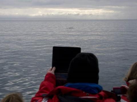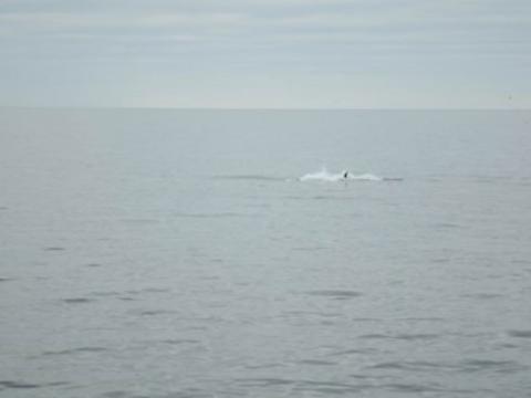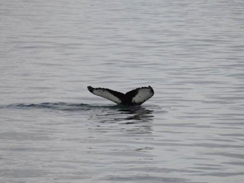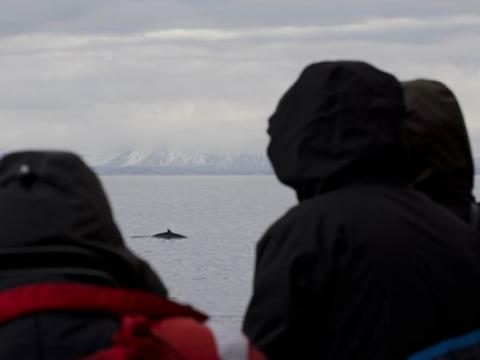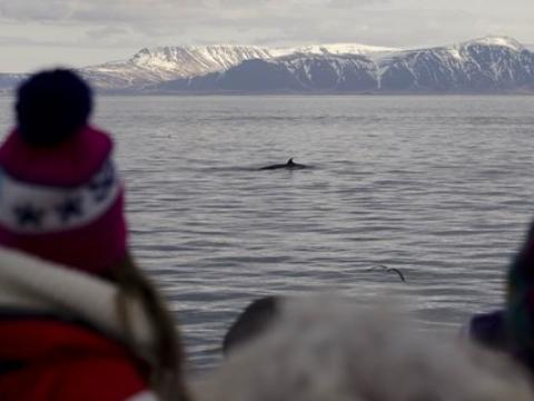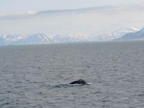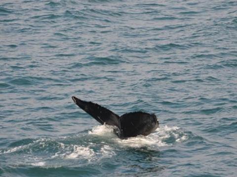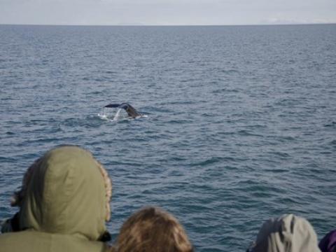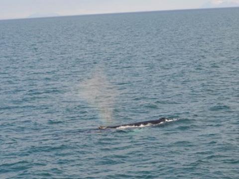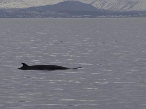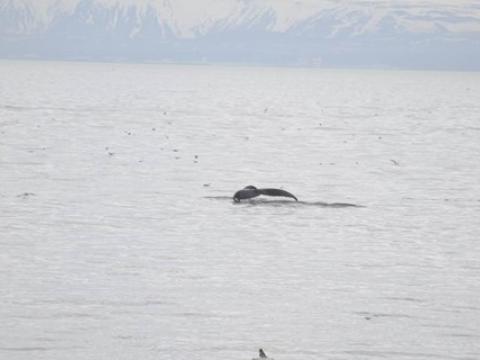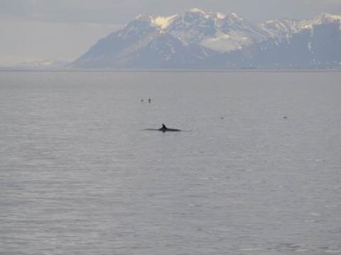 Report from Hafsúlan: Sailed out in beautiful weather, a slight chill in the air but the sea could not have been better. We saw Harbour Porpoises first, a small pod of 2-4 animals surfacing fast and hard to track. Then after about 20 minutes sailing we had our first Minke Whale. They seemed much calmer today maybe due to the weather, but they seemed much more relaxed and surfaced close to us on many occasion. One Minke even surfaced about 2-3 meters from our boat, just as we were looking at a flock of kittiwakes sitting on the surface. Saw maybe 4 or 5 scattered Minke Whales on this tour and another 2-3 pods of Harbour Porpoises. It is really fantastic to see so many of them, coming back into the bay after their winter vacation south. Then we tried looking for some dolphins but found a Humpback Whale instead, an individual we recognise by the very black fluke. Probably the same one we saw a couple of days ago and the afternoon on the 28th when we had 4 humpbacks in the same area. Wonderful humpback that showed its beautiful fluke many times. A great start to the day.