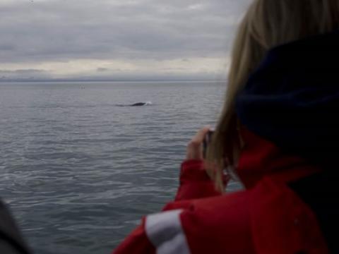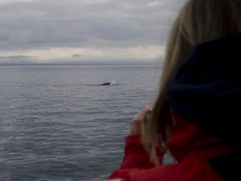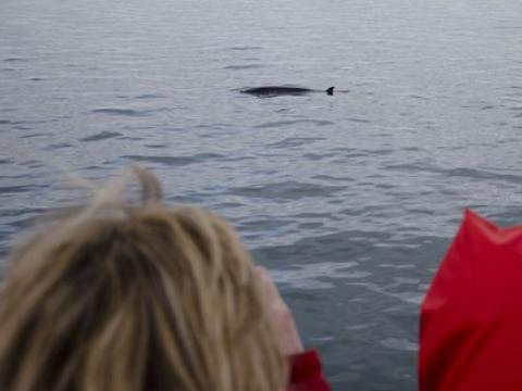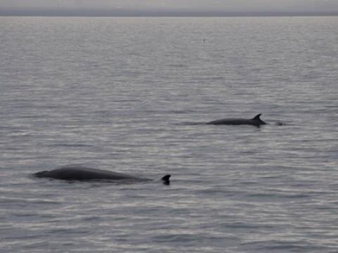 Report from Hafsúlan: Again the weather was just beautiful as we headed out, totally smooth ocean and the sun came out in between the clouds. We headed towards the area where we were this morning but there wasn't as much life there like earlier so we decided to head more to the south. After a short sail we saw a few Harbour Porpoises that surfaced very quickly, very elusive and small animals but fun to see them when they allow us to! The sun came out and it showed a sparkling black back in front of us in the distance. We sailed towards it and we could see that there was a lot of bird life in the area and when we took a better look there were feeding Minke whale all around and we could even smell the "bad breath" that they are known for ! there were at least 10-15 animals in the area and one of them even surface lunge fed right in front of the boat so we could see it come up to the surface with it's mouth open! it also rolled and showed us it's spectacular feeding behaviours! Everywhere around us there were minke's surfacing and even a mother with a young that surfaced both at the same time very close to the boat. After we spent a good amount of time in that area we decided to head to a different spot and try our luck in finding other species, and we weren't disappointed as a fluke was spotted from an animal taking a deep dive further away. It was a Humpback whale! The animal seemed to be quite small and it wasn't the same one as this morning, but like the one this morning the animal was very calm allowing us to get a great look at it. After our time ran out we headed towards the harbour and on our way there we could see 20-30 Harbour porpoises and many minke whales. It was a beautiful day full of wild life .. It obvious that summer is getting closer ! - Freydís ÓskTour at 09:00