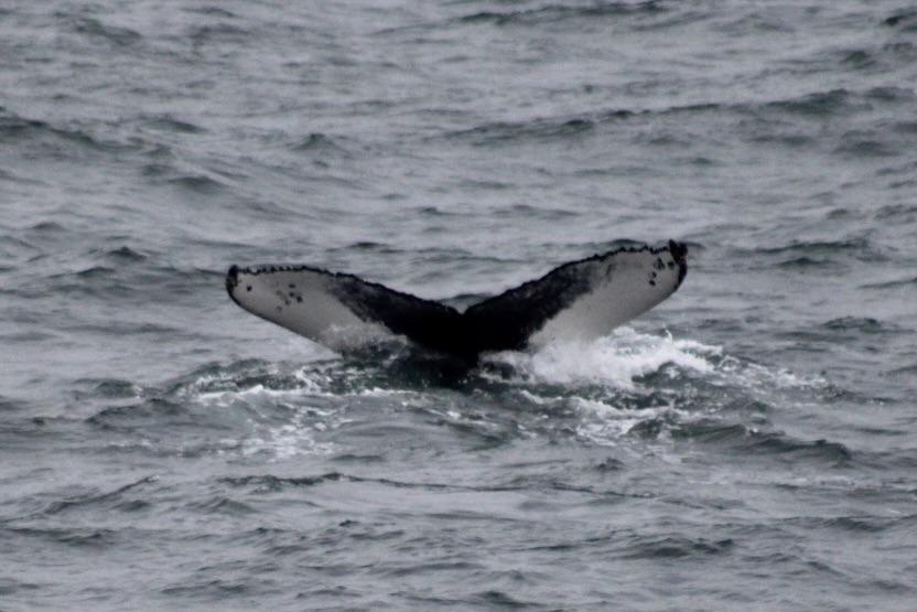 Report from Eldey: What a calm and lovely morning at sea today! We started sailing out west, spotting the many seabirds on the way and having fun pointing at the Atlantic puffins. We got to an area where we spotted a blow, but before we got to this one, we spotted a minke whale on our left, closer. This individual was calm and we could see it for a couple of times, until we focused on the other blow ahead. This one belonged to a humpback whale! How lucky! This one spent a while under the water until we finally got to see its fluke, and we recognized it as Mr. Bubbles, a whale seen before in Faxaflói. We stayed a bit more with it, until we started to head back to Reykjavík. On the way, we saw a massive flock of Northern fulmars, and close to them, a pod of about 5 harbour porpoises. What fun, to see them speeding up and so predictable around us! We had fun spotting them and happy with our sightings this morning.