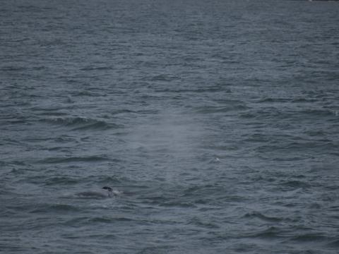 Report from Eldey: Another awesome but rough day on the seas. We started the tour with beautiful scenery, the most blue sky we have seen on over a week and a strong warm glow over the city of Reykjavik. We have had a lot of westerlies latety that bring in the rolling waves, we have, however, been very lucky to have a humpback whale that has been close to coast, around the islands near Reykjavik for the last 3 days and we were VERY happy to find Mr Humpback there again. Took us just 30 minutes to find it and stayed with it for over 1hr. Of course if we felt we were disturbing it we would have left much sooner but first it was just travelling, surfacing often and then turned and fell asleep so oviously not purturbed by us at all! It's always a great feeling to know your not disturbing the wild animals when they fall asleep right next to you. Whales shut down half of their brain at a time so they are always conscience but just slows down their movements. We searched for other animals too but other than the nice selection of seabirds we were not successful. Still it was a fun, adventurous and productive whale watching tour today.