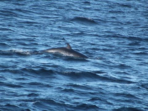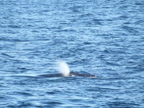 Report from Hafsulan: After a night of continuous rain, we got a break and enjoyed a departing with a rising sun in our back. Rain having just stopped, we were greeted out there by a magnificent rainbow, drawing a full arch in the sky. The first species we sighted was harbour porpoises, about 5 of them, surfacing with haste, obviously eager to put some gap between them and the boat. After sailing further away, we ended up in an area full of northern gannets fishing, and northern fulmars fighting to get on the best spots next to fishing boats. The area seemed to be full of food and life, so we gave it a try and strolled around. Suddenly a minke whale surfaced right in front of our boat, about 40m away from us! It then disappeared for a while and it took us long time before finding it again. But after persevering we could steal satisfying glances at it, before spotting a huge blow. There was our 3rd species of the tour, a glorious humpback whale! It was displaying an interesting sharking behaviour, rolling on the side and skimming the sea surface to feed. Such a stance made the tail fluke look like the dorsal fin from a shark, hence the name. We stayed with the humpback until it was time to go home, but not without seeing a second minke whale.