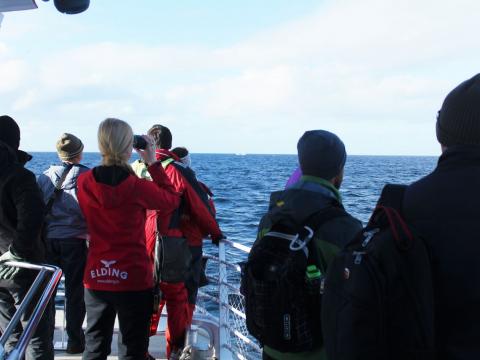 Report from Hafsulan: It was a beautiful sunny day as we left the harbour of Reykjavik, with only a little wind and very little swell. Throughout the tour we were blessed with a wonderful warm sun, and lots of beautiful seabirds who were flying and feeding in flocks. These birds included the fantastic gannet, kittiwake and northern fulmar. The bay and surrounding areas were also bathed in a spectacular light and along with the rain and moisture in the air gave rise to the most beautiful and bright rainbows. Unfortunately, however hard we tried no cetaceans were spotted on this tour so complimentary tickets were handed out to all passengers.