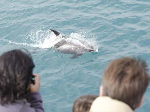 Report from Hafsúlan: I was a expecting a beautiful evening as we steamed out in to the bay but my expectations were blown away. Cracking a few jokes we sailed leisurely looking out for cetaceans. We didn´t have to go very far before spotting three minke whales in front of the boat. We turned off the engines and had them come right up to us. We stayed there for about 45mins with the whales blowing right beside the boat. Then some white beaked dolphins started leaping behind the boat, so we turned around and followed the pod of more than 10 individuals whose behaviour changed from leaping to leisurely swimming several times.To our left was the stunning sunset and to our right dolphins swimming next to us. Our talented musician started playing songs and we enjoyed our ride back home. Fantastic tour.