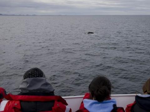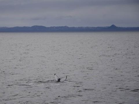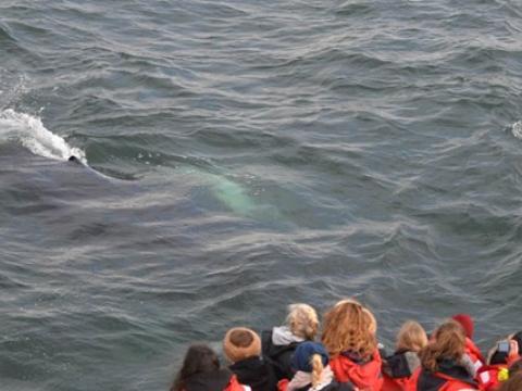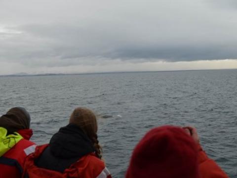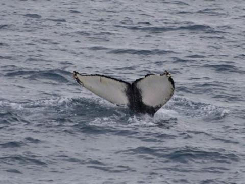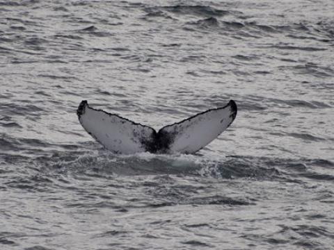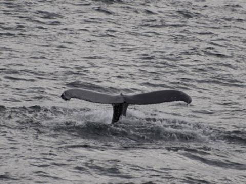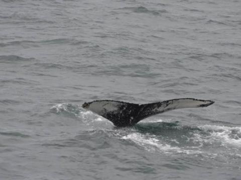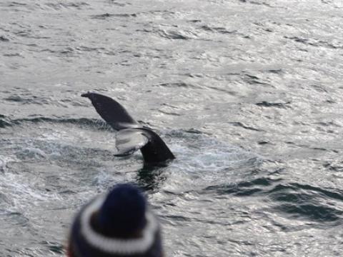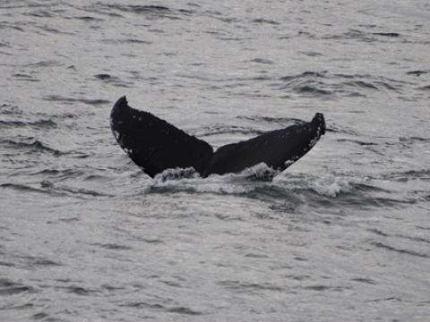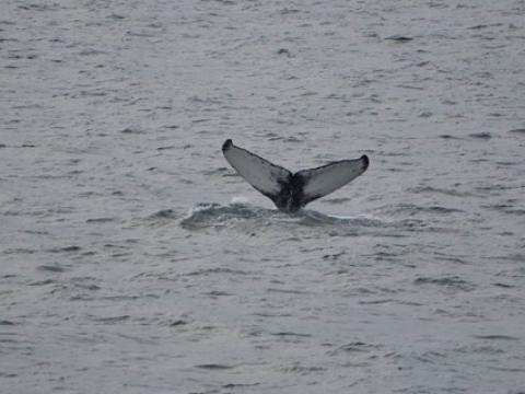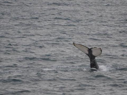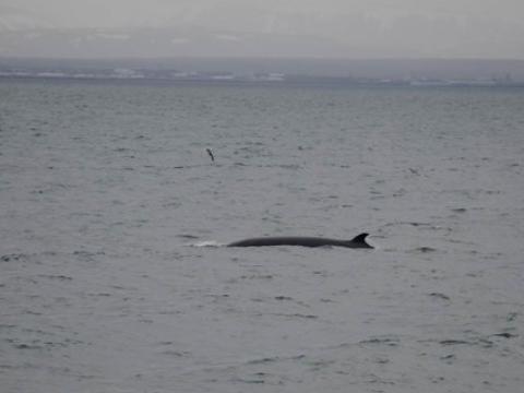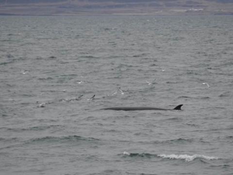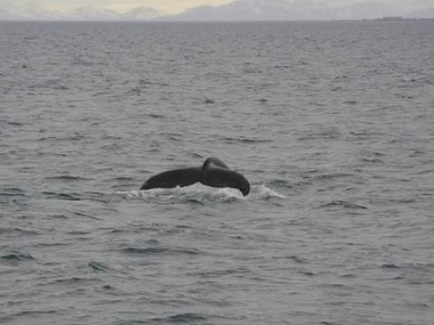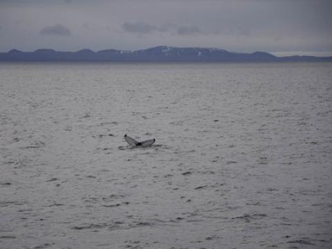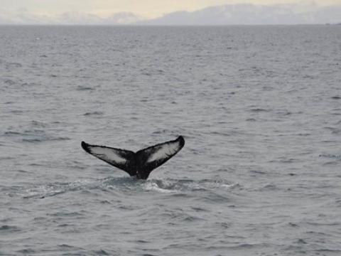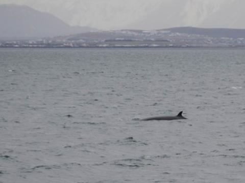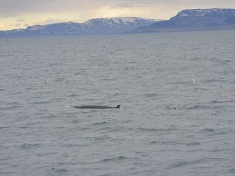 Tour at 13:00Report from Hafsúlan: The wind had picked up a bit since this morning but the visability for whale spotting was still very good. We headed out towards the area where we were this morning and only after a couple of minutes of sailing we spotted a pod of 4-6 Harbour Porpoises, we were able to get a good look at them but like they are known for, they disappeared soon. We headed further out and only after about 30-40 minutes of sailing we spotted a big blow in the distance! We headed towards it and on our way we met a Minke Whale! There were a few minke's in the area, maybe 5-6 animals, but they were moving very quickly and taking long deep dives so it was hard to keep up with them. Again we saw the blow and it came from a Humpback Whale. There were actually 2 humpbacks in the area so while we watched one of them we could see the blows from the second one further away. It was the same with the humpbacks as the minke's they seemed to be moving fast but we got a very good look at both of the species while they surfaced close to the boat. After watching one of the humpbacks for a good amount of time we decided to head furhter out and try to find more animals to minimum the disturbance for the humpback. We only had to sail for a short distance when we found more minke's, there was even a time when we could watch two minke's surface at once almost side by side very close to the boat!When our time was almost up we decided to look for the humpbacks to get one more good look at them before we left. We found one of them after some close scanning and we got a great look at the animal which ended our tour by taking a deep dive and waving us good bye by showing it's fluke. It was a good afternoon with the cetaceans and it looks like our beautiful bay is filling up with wild life!