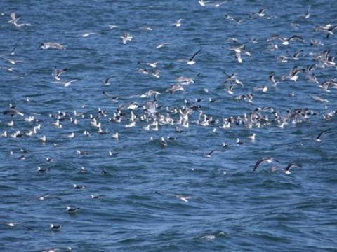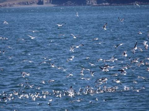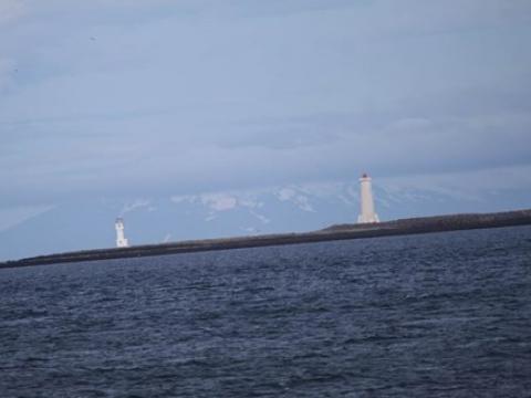 Tour at 10:00Report from Elding: the strong north-northwestern wind made us go first towards Akranes to search for whales but then we got a call from Hafsúlan that they had white-beaked dolphins. The problem was though that they were much further out. We still took a turn towards their location but once we had arrived there, after a journey that took us a while because of the wind, the dolphins were gone. Hafsúlan went home but we continued searching, which yielded us with at least 3 different minke whales close by, feeding in an area that the fishfinder told us had a lot of fish in, in the company of the highlight of the tour, possibly the greatest number of northern gannets that I have seen diving in the same spot in a long time.- Baldur Thorvaldsson