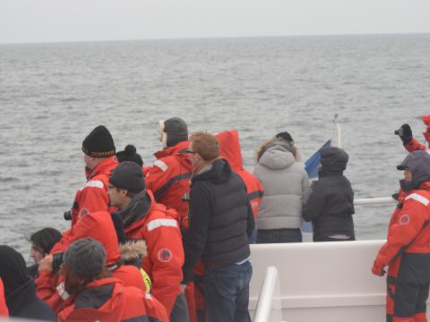 Report from Hafsúlan: the first whale-watching tour in the month of November was greeted with strong north-eastern winds coming full force out of the mouth of Hvalfjörður fjord, which ensured a rocky journey most of the time. We sailed far and wide on this tour but there was just so much wind and so many white tops on the water that it was next to impossible to see if anything might be moving through the water. As a result, this became a non-sighting tour and so complimentary tickets were given. But as we say here in Iceland, 'Fall er fararheill'. Essentially this saying means that bad luck at the start of a journey means good luck for the rest of it. Today was not only the start of November but also the offical start of the winter season. Hopefully we will be looking at much better tours ahead of us for the rest of the year.