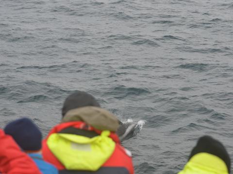 Report from Hafsúlan: the second tour of November was better than the first one thanks to a delightful pod of 10-15 white-beaked dolphins that we came across roughly north-west of Akranes. First we saw 2-3 and their zig-zagging behavour indicated that they were on the trail of some fish. We spent a bit of time with them but when another whale-watching boat came, and we spotted some more dolphins in a little distance, we decided to leave those with the other boat and head for the newly-found ones. It was a truly great afternoon spent in the presence of this mainly sub-Arctic species, on which they would often approach the boat and swim under it in their fish chase as well as jump out of the water as part of their herding behavior. A few harbour porpoises also showed themselves shortly. So many close encounters that built up more confidence for November!