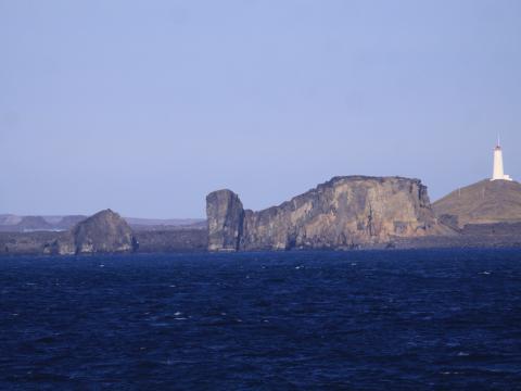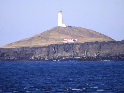 Report from Elding: Our second tour of today also went out from Grindavík where we found shelter behind the land when we were close to coast but we noticed the strong wind when we reached the unprotected part of the North Atlantic Ocean. At the beginning we enjoyed the blue sky and sunshine but then thin clouds came up and covered the sun in a veil. After a short while we noticed the splashes of a pod of Harbour Porpoises milling around and swimming very fast provoking the splashes when they emerged. After several short sightings of this small cetaceans which were quite close we continued further on were we met from time to time seabirds like the majestic northern gannets and two more times Harbour Porpoises, so in total it came up to almost ten individuals. We hoped to find bigger cetaceans to have a better look at but as they were not showing up we handed out complimentary tickets to give everybody the chance for another try. But just the sailing with view at the lighthouses, cliffs and rocks made a good background for the music video clip which was shot on board.