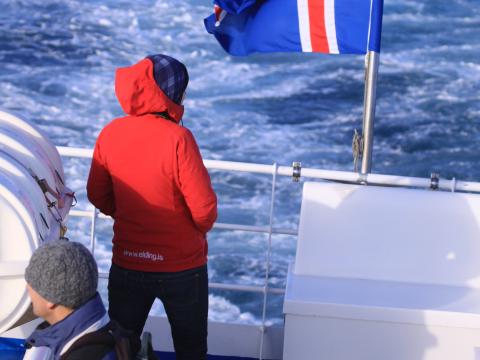 Report from Elding: Today we started our tour in Grindavík because of the adverse sea conditions in Faxaflói Bay. Even though there was quite some wind at times the sea was surprisingly calm on the other side of the Reykjanes Peninsula. And so we sailed out into a beautiful sunny morning while enjoying the views of the South Coast which we followed for the first part of the tour. Eventually we discovered some birds and headed a bit further offshore to take a closer look. And sure enough we soon saw splashes underneath the birds - a pod of harbour porpoises! At first they were a bit difficult to spot but then the whole pod (at least 8-12 individuals) surfaced very close to our boat as they passed by in front of us. As we sailed on we found at least 3 or 4 more pods - all of them very friendly for porpoises! At times we were almost surrounded by them as they splashed and raced through the waves. In total we must have seen 30-40 porpoises on this tour. Unfortunately though, we did not manage to find any larger whales and therefore offered our passengers complimentary tickets. Hopefully they will be able to come along for another whale watch and get to see some of the other species we are sometimes lucky enough to see!