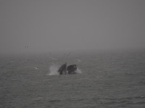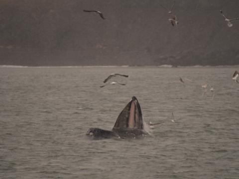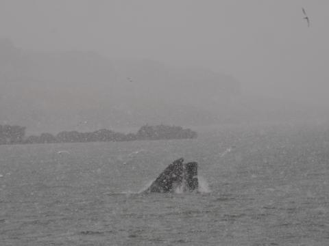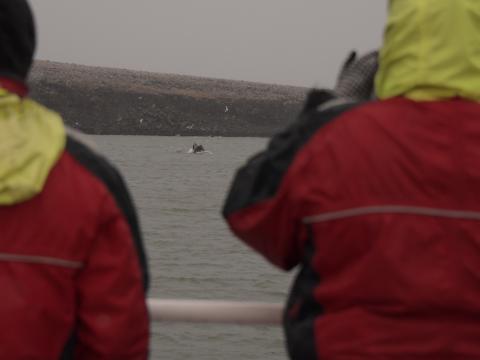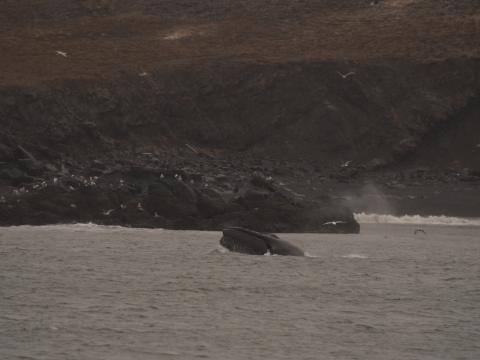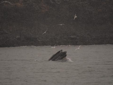 Report from Eldey: Welcome to Iceland and welcome to winter whale watching! What a fabulous tour!!! As we sailed out to Kollafjöður, the area that's been favoured by a fantastic humpback whale, we definitely got to feel the cold and snow on our faces. Maybe a bit hard for some to endure this kind of weather at the beginning of our tour, but as soon as we found our humpback whale for the 9th day in a row now and it began lunge feeding, there was no keeping anyone inside. For 1 1/2 hours the whale was lunge feeding together with numerous birds and a super cute harbour seal that kept coming right up to our boat and looking at us. Everyone soon learned how to tell what the whale will be doing simply by watching the birds. Whenever the whale was about to lunge feed, they dove down to the water surface to be able to grab the fish with their beaks that the whale was pushing upwards through it's massive body. Our captain did a great job of keeping the boat in a direction that we could watch the whale with the wind in our backs for most of the encounter. As we decided to leave and return to harbour, we began speeding up but as soon as we did, another lunge feed followed and we stayed a few more minutes, just unable to leave such an incredible whale. I am still smiling and don't mind whatever weather if we have an encounter like this :)