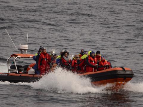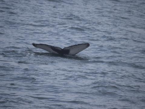 Report from Eldey: We were greeted with calm seas this late afternoon and even lucky enough to catch some dazzling rays of sunshine through the clouds. Our tour began with sightings of harbour porpoises and a great amount of bird activity with some fantastic sights of diving northern gannets. We then saw the blow of a minke whale which we watched feeding and diving on numerous occasions before being interrupted by not one but two humpback whales feeding in the bay!! We stayed with these two animals for over half an hour and witnessed them diving and surfacing all around the boat - they definitely kept us on our toes! This tour was particularly great for seabirds - with lots of puffins seen as well as the mischevious arctic skuas opportunistically stealing food from the arctic terns!
