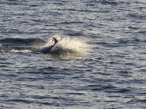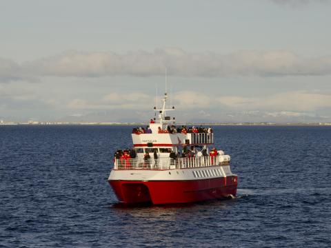 Report from Hafsúlan and Elding: today was a wonderful day out on the water; calm, eastern wind, no white tops, and just a little cold. We had a large number of passengers so we went out on two boats so that there would not be much crowding and that everyone could see well. We went out together and Elding saw first a pod (10-15) of white-beaked dolphins that seemed like they had steroids for breakfast and lunch, based on the splashes! They were moving around fast, coming and going and often approached us very close both at the sides and the front. It was a totally brilliant encounter! Then we left the dolphins alone and went further out into the bay in the hope of finding the whales whose blows a fishing boat had reported seeing yesterday. We sailed out to and through that area and even further in the hope of spotting blows but it seemed like they had moved on and so by that time we found we had to start sailing back to Reykjavik. We did actually have a very brief whale encounter in the shape of our first minke whale for some weeks (minkes leave these waters over the coldest months of the year) which came as a surprise but it is not like there is one particular departure date to more warmer waters for these ocean inhabitants. However, this minke's interest in being watched only extended to Elding, for when Hafsúlan arrived on the scene, it had gone down for a deep dive and was not seen again. We then had to go back but couldn't help having a look at some more dolphins (4-6 animals) that we encountered enroute. One harbour porpoise was also spotted by a few passengers on Elding to. It is safe to say that today was as good conditions-wise as a November day could ever be, hopefully the rest will be the same.
