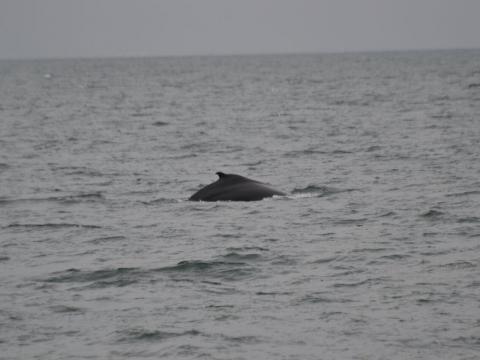 Report from Eldey: So the rain would not stop, the wind did not blow and so the conditions where not too comfortable but still the visibility for spotting cetaceans almost ideal. So it came yet another time we found the smallest cetaceans of our waters, the harbour porpoise, quickly. Passing them a minke whale should be our next encounter, and some more where to come. In total we saw three of them at this tour and all of them appeared to be feeding according to their rapid change of direction and unsteady surfacing pattern. A fast moving pod of white beaked dolphin crossed our path before we finally found a humpback whale, also surrounded by many feeding birds and rolling before it went to dive down. We almost lost track of time and where quite far out in the bay, so we hurried back home and on our way still saw two more minke whales.
