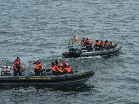 Report from Hafsúlan: This morning we started our tour heading out west. Not long until we spotted a pod of white beaked dolphins after leaving the harbour, with 3-5 individuals. As we kept going we encountered at least 4 different minke whales that were feeding as well as traveling. They didn´t seem to be disturbed by the whale watching boats in their feeding area, which made it possible to see them close up when they were surfacing just infront of the boats. Additionally we sighted another group of white-beaked dolphins with 5 individuals. Since we were already out of time, we had to had back, on this we we encountered at least 6 harbour porpoises, which seemed to be two pods that came to together to feed in the same area. Overall a very good and unforgettable tour.