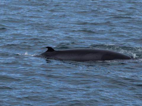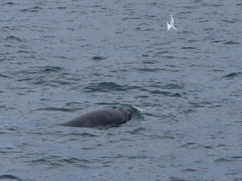 Report from Eldey: When we left the harbour in the evening the wind was quite strong but the sun was up so it still felt great to be outside and breath the fresh air. This time we had to sail far out to encounter our first wildlife. When we reached an area with hundreds of seabirds feeding we were very optimistic to also spot some whales and dolphins in the area. But this time we were wrong. After spending some time watching a great diversity of birds we decided to head further out. Again we found an area with big flocks of birds. And this time we were luckier - there were at least 3 minke whales in the area. Although they were the most of the time very elusive, showing only quick surfacings, one of them surfaced three times close to us in front of the vessel, so that most of us could see its body in all its elegance. Unfortunately, we had to leave this animal shortly after, since we had a very long way back home. But on some days we need to be patient and wait until the very last moment to see these beautiful animals.