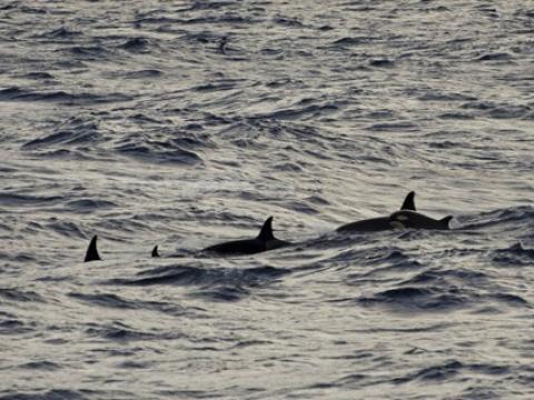 Report from Hafsulan and Elding: Once again we sailed out of Grindavik after a 45-60 minute bus ride from Reykjavik with all our passengers. Everyone must have heard about yesterday's tour as we had about 190 passengers joining us. Thus, we took out two boats so that our guests had more room for comfort. The weather was a lot choppier than yesterday's adventure which was not good for the sensitive stomachs but most had a blast, even a young 4 year old boy came to talk to me at the end of the tour to tell me how much fun he had. We sailed offshore to the west for a while but we saw no signs of blows the sea swell was also increasing, we changed course to make the ride stabler. This was also a good decision because just a couple of minutes later we spotted a big flock of seabirds and Killer Whales. At least 10-15 individuals from young calves to grown adults. It was incredible, after a few minutes they stopped feeding and travelled to the east which was not a good direction for us but we followed them for a while nonetheless and then headed home. We wished the weather would have been better but the wildlife was fantastic. Hope they stay there a while longer.