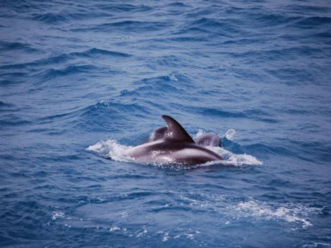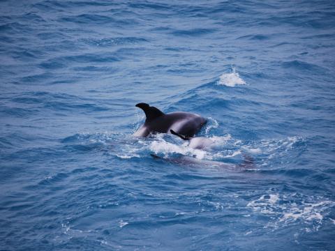 Report from Elding: The weather conditions continued being not as good as desired. The wind kept blowing rough and hard from the south-east, clouds were covering almost all the skies and a dense misty was starting to thickening out in the bay. But it really didn't matter, as we were about to see one astonishing spectacle in this tour. About 40 min after our departure we saw our first species: a small pod of about 4-6 white beaked dolphins, wandering really close to the surface some few meters away from us. We stopped our boat, since we wanted to appreciate better this beautiful big dolphins, and we discovered that, indeed, we had at least two other pods surfacing really close to us, each of them with the same amount of individuals, 6-8. We could see that those few dolphins that were a little bit more far away from us were starting to slightly jump. We moved a little bit far away, trying to spot another species. It took a little while, but at the end we spotted a small blow, about 300 m away from us. We approached the animal, but it seem to be quite elusive. It was a minke whale, and we managed to spot it surfacing the seas but only once. We started to feel a little disappointed about this elusive behaviour of the whale, but then, suddenly, something happened at 12 o clock. A strange huge splash about 300 m away from us. We sailed a little towards it and we saw it again! It was the minky, which was breaching over it's back just in front of us! A really special and unique behaviour from this species of whales, that can be rarely seen on our tours! It was an impressive and wonderful sight: the white belly shining with the weak rays of light, and the dark back harshly colliding with the surface. Unfortunately, we had to leave this incredible minke whale since we were running out of time, but on our way back home we managed to see another pod of dolphins. And this time they were all jumping out of the surface. An incredible ending for such an unforgettable tour!
