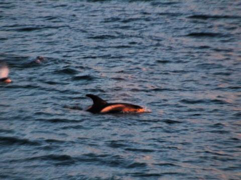Report from Eldey: We are definitely progressing deeper into winter, as we left the harbour still in the dark! It was freezing cold as well, but nothing new here. The perk of leaving when it's still night is that we could witness the slow sunrise during the tour. It started with a faint light yellow color covering the sky more and more, until the sun finally painted the sky with orange and the clouds with pink! To top it all, we were sailing on calm waters, reflecting the landscape nicely. Our exploration of the bay was pleasant overall, and it was fruitful! We ended up in an area where there was about 20 white-beaked dolphins frolicking around! We found them because one was jumping out of the water again and again, in a tireless spur of energy. Soon the dolphins were spread out all around us, and coming close to the boats intermittently to have a closer look at us. And it lasted for a while! It was a super nice encounter, and a refreshment after the last rough days with no sightings. Back to business!
