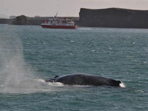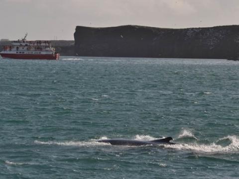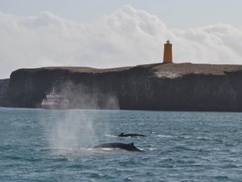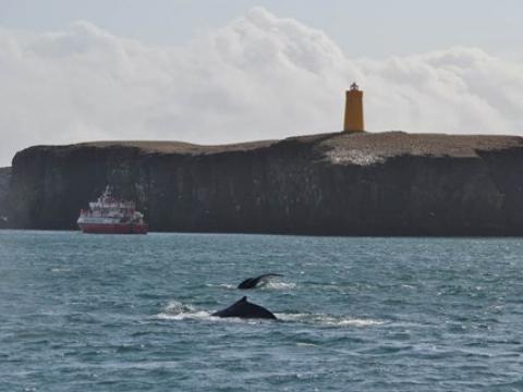 Tour at 13:00Report from Hafsúlan and Elding: We took two boat out this afternoon and decided to go out from the harbour in Keflavík because of more favourable sea conditions there. As we sailed out from the harbour we could see that the area was crowded with bird life, Northern Gannets flew around the boat and we could see some birds feeding a little bit further away. After a very short time one of the boats spotted a blow , and with a closer look we spotted 2 Humpback whales, one a little bit further away. We watched the humpback whale surface around us, it was constantly changing directions, probably feeding as the fish dector showed some activity just below the surface. As we looked around we saw a blow from another humpback whale. so the boats took turns, staying with different animals, one boat at a time so we would minimize the disturbance. After spending a good amount of time with the animals, we decided to search for something else. after a very short time 2 more humpback were spotted, feeding very close to the shore. They were amazing to watch as they didn't seem to mind our presence and surfaced right next to the boat and swam under it! The boats took turns, one watched the humpbacks while the other spotted a Minke Whale! Both boats got a good look at different minke whales and of course 4-5 amazing humpback whales. Before we headed back to the harbour we decided to sail towards a big cliff, which was full of bird life, and had a beautiful lighthouse on top of it. But as we were heading away from the cliff, we just had to take another look at the beautiful humpback whale duo.This tour was just filled with wild life, many species of seabirds, 5 humpback whales and 2-3 minke's, even when we were almost at the harbour, a humpback whale surfaced twice, but then took a deeper dive and disappeared. What an amazing tour, filled with wild life and beautiful landscape. - Freydís & MeganTour at 9:00Unfortunately due to unfavourable sea conditions we have decided to cancel the 9:00 whale watching tour.