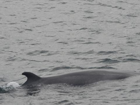 Report from Hafsúlan: As we departed from Reykjavík, we were full of hopes to find cetaceans again after the successful tours we had previously. We spotted one minke whale after about an hour, but only saw it once before it vanished. However, we soon sighted another one. This one was also a little elusive, but it surfaced four times in a row about 50 m from our boat, so still everyone got a close look at the minke whale. Only a few minutes after that we came across a pod of 6-8 white-beaked dolphins. They crossed our path a few times and we easy to follow while they were traveling next to us surfacing in the sun's glare. Beautiful dolphins saving the tour!