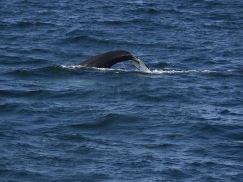 Report from Eldey: We sailed out in good weather again for this afternoons tour with spectacular views of snæfellsjökull in the distance. We headed towards the same spot that we witnessed Picasso, our regular humpback whale, from this mornings tour and sure enough we were greeted from blows from this individual again! We stayed with Picasso for over half an hour before heading off further into the bay. We then happened to see some blows in the distance which turned out to be another humpback whale! We repeatedly watched it surfacing and diving and passengers could get some great shots of the tail fluke - along with a few close ups of some inquisitive northern gannets - another great tour!