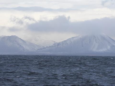 Report from Eldey: A bitterly cold, blustery day on the Bay however, this made for a stunning scenery of all the snow-capped mountains. The winds were estimated at about 12-14m/s coming in from the north....bbbrrrrrrrrrrr. The sea conditions were not that bad, maybe a little rocky as we passed Hvalfjörður (Whale Fjord). It was not long until we found a pod of 7-10 friendly white-beaked dolphins. They surfaced suddenly in the swell just to the right of us and soon started leaping, body slamming and playing uder the boat. They are very beautiful dolphins and so much fun to watch. After a while they started to travel fast and looked to be on a mission to catch some lunch and so they left and we did too. We were hoping to find the humpbach whale from yesterday but unfortunately no other cetaceans were to be found on this tour. We enjoyed the landscape, wildlife and being out on the water and made full use of the bar where hot drinks were bought in adundance. Don't forget to order the 'Whale Punch' (Hot chocolate with Rum) next time your on board... Yuummmmm!