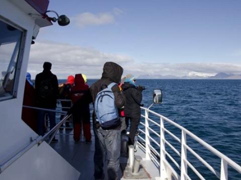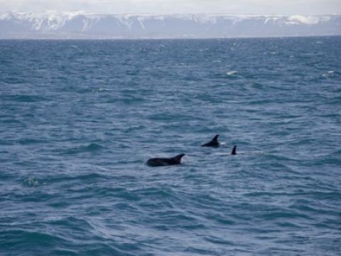 Report from Hafsúlan: Once again the weather and sea conditions were perfect. A very chilly wind from the NW but the sailing back with the wind was lovely and warm, summer has obviously arrived. 30-40 minutes sailing offshore we found 3 Minke Whales feeding in the same area and suddenly vanished once we got there but out of no where White-beaked Dolphins 3-4 animals surfaced just 10-20 meters from or boat. We watched those for a while before searching for the Minkes again. Again we found 3 Minke Whales, either now ones or same as before just moved a little ways. We saw them surface many times but still at a distance not letting us get too close. After a long while with the Minkes we decided to search for the dolphins again and had them surfacing right next to the boat. There were flocks of feeding birds too, Fulmars, Kittiwakes and seagulls. Occasionally 2-3 small pods of 3-4 Harbour Porpoises also showed up usually surfacing fast. On the way home with the sun of our face we saw two more Minke Whales surfacing very close to our boat. Had to be fast in spotting them though, they are quick!