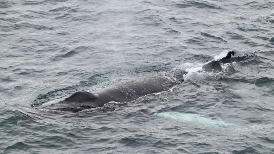 Report from Hafsulan - Today, despite the fog and light rain, we set out on our whale-watching adventure, our spirits undeterred by the less-than-ideal weather. The misty air added an element of mystery and anticipation to our journey, making every ripple and movement in the water seem like a potential whale sighting. As our boat cut through the gentle waves, we scanned the horizon, eager for any sign of a whale. Then, in the distance, we saw it – a blow of a humpback whale! We took our time to approach, the excitement building with each passing moment. When we finally drew near, the whale came close to us, diving gracefully under our boat and giving us the closest, most awe-inspiring look possible.