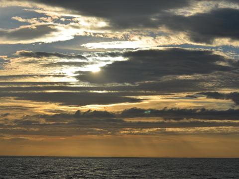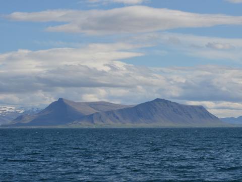 Report from Elding: Half of the sky was covered in clouds when we left, but the sun was right behind them, ready to emerge at anytime. After a quiet sailing to the main whale area, we noticed splashes far away, 2 kilometers away. The animal responsible of this tremor seemed quite big, but we will never know if it was a leaping dolphin or a breaching minke whale, as we decided to not mover over there because minke whales were spotted in our area. Indeed, we found 2 sleeping minke whales. These individuals were hardly moving, surfacing very slowly and always in the same direction. This allowed us to take few close looks before we decided to leave them sleeping in peace. After traveling a little bit more, some passengers spotted one white-beaked dolphin. But the animal was elusive and did not let us see it more. It was then time to go back home, so we headed back to Reykjavik, listening to the songs of our 2 awesome musicians. (Special note: Happy Birthday Jeanette, you were a very pleasant passenger and spotter !)